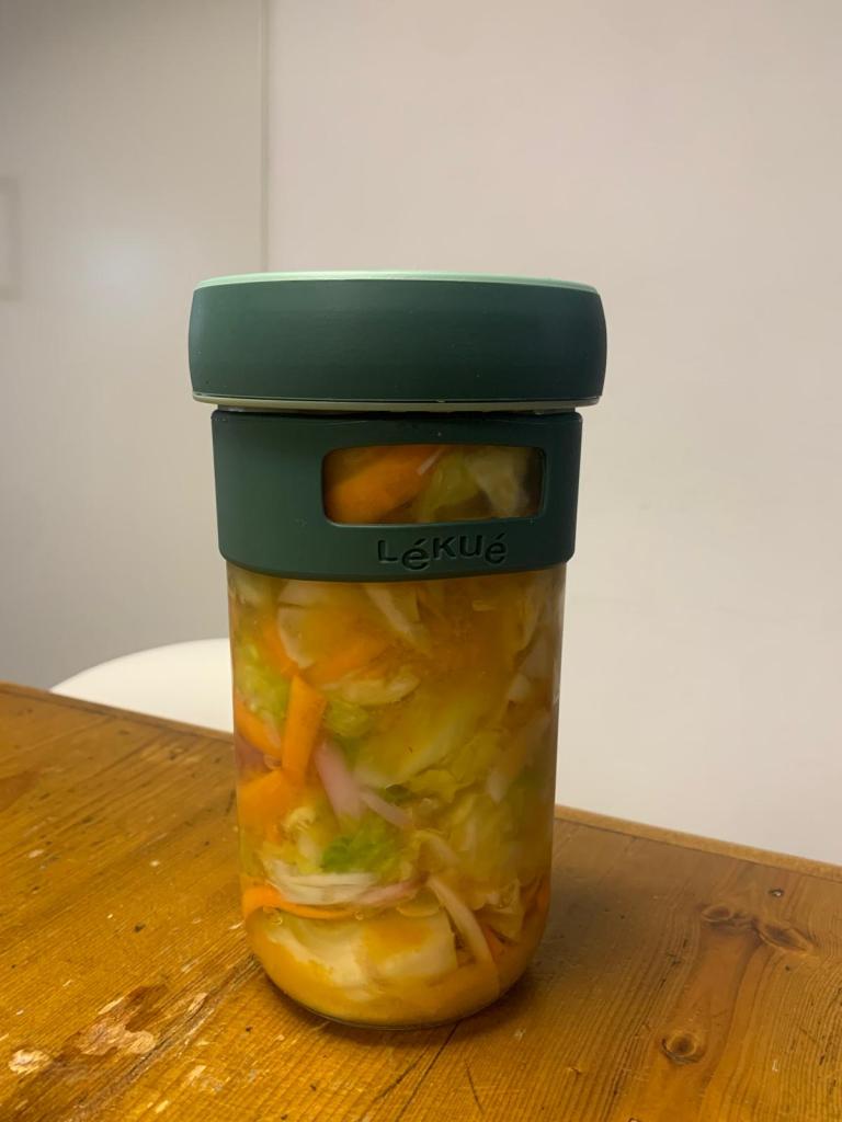 Riponiamo il contenitore in un luogo in fresco lontano dalla luce solare, o in frigo per circa 2 settimane, ma potete decidere la consistenza delle verdure che preferite e il tempo di fermentazione.