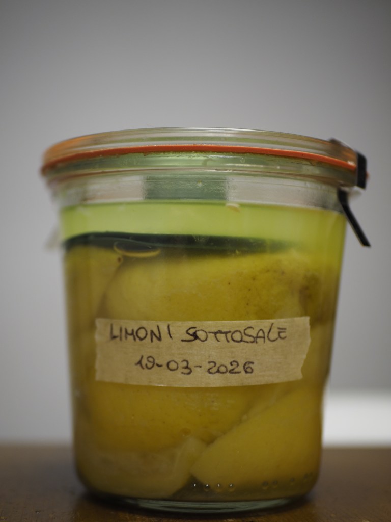 Se credete che la ricetta dei pickels (credo di non poter smettere di dire pickles) sia stata difficile, non avete idea di quanto lo sarà quella dei limoni fermentati: lavate accuratamente la vostra mercanzia e procedete in maniera analoga per la sterilizzazione del barattolo. Incidete i limoni creando una croce e inserite nei pertugi appositamente creati il sale. Adagiate i limoni nel barattolo e pressate in modo da far uscire il succo. Se ciò non dovesse essere bastato per ricoprirli, procedete aggiungendo altro succo di limone e integrando con una minima parte di sale.
